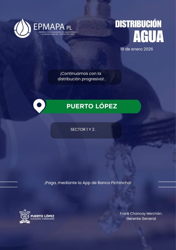 En este momento continúa la entrega progresiva de agua en los sectores 1 y 2 de Puerto López.